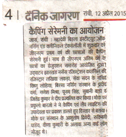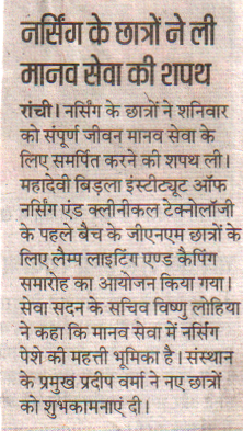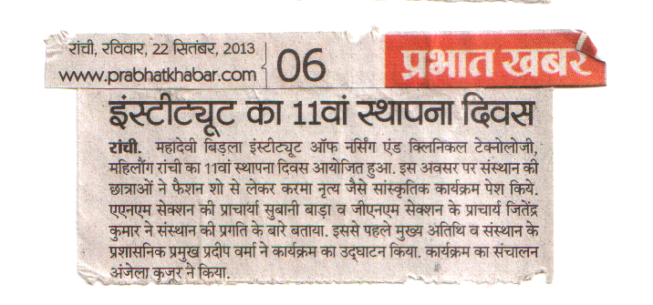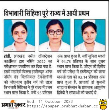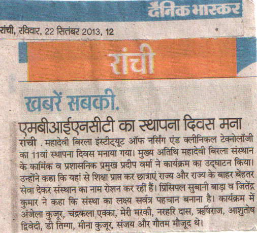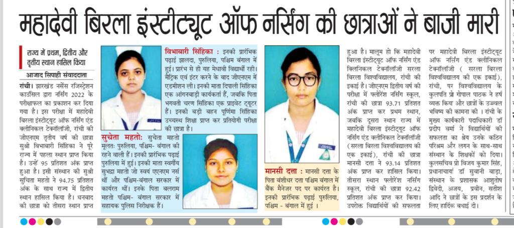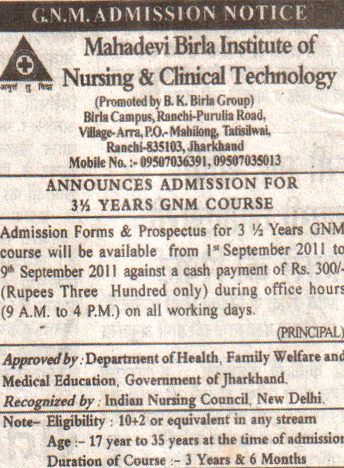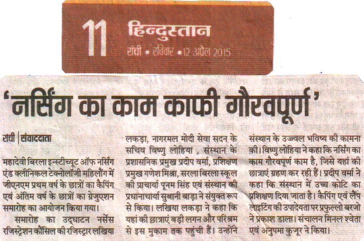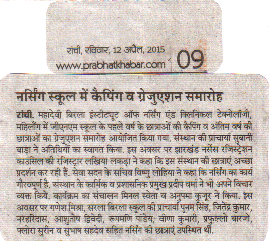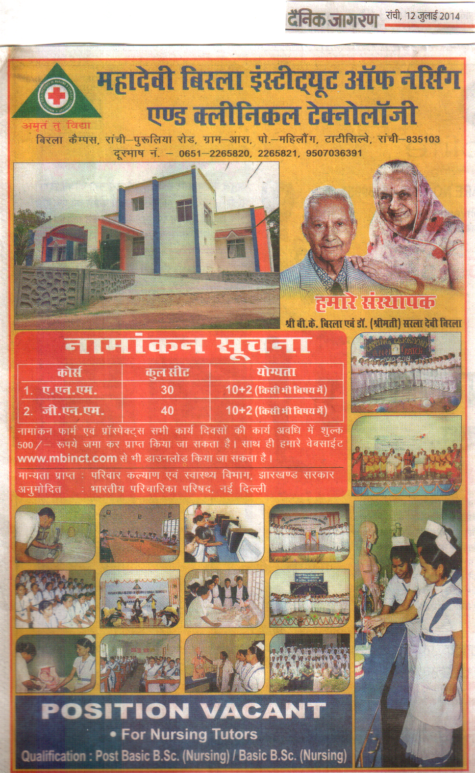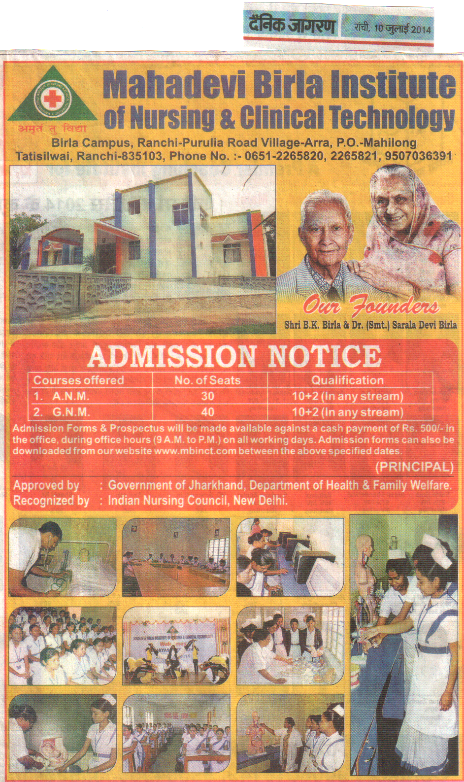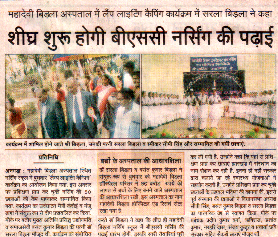 A nursing training school, located in Mahilong along the Ranchi-Purulia Highway, has been established through the efforts of Bharat Arogya & Gyan Mandir, operating under the prestigious B.K. Birla Group. Renowned for its successful management of top-tier educational institutions nationwide, the B.K. Birla Group is firmly dedicated to delivering high-quality education.