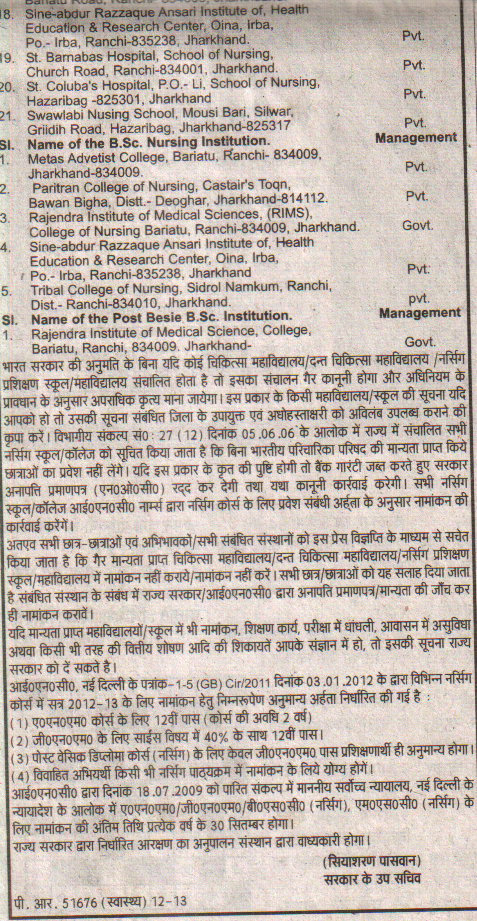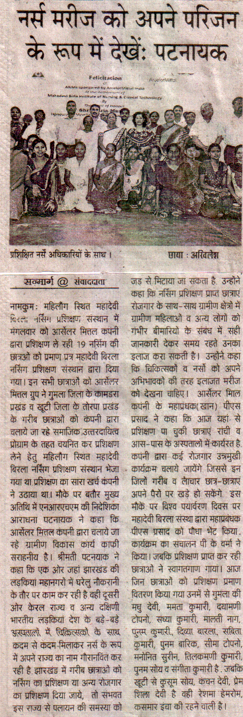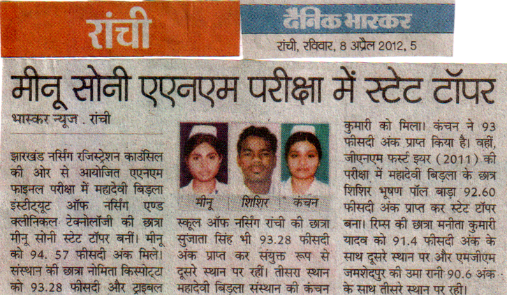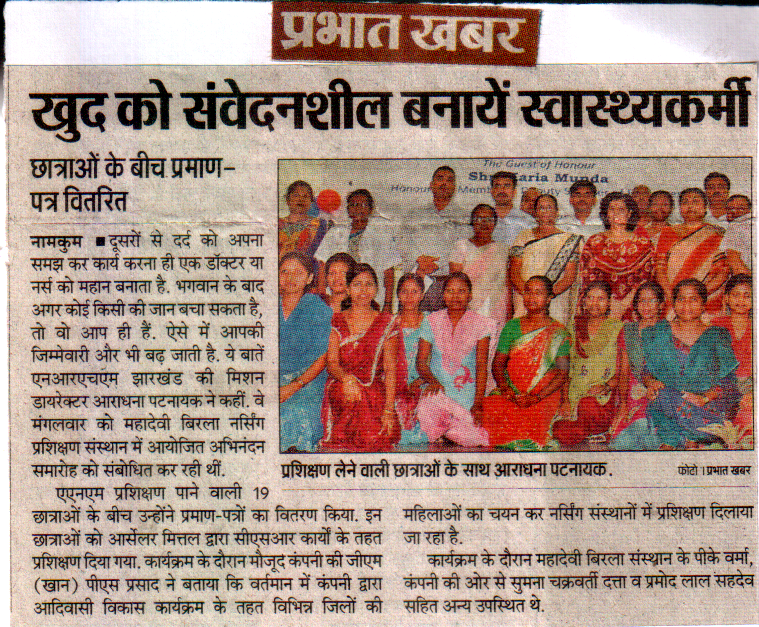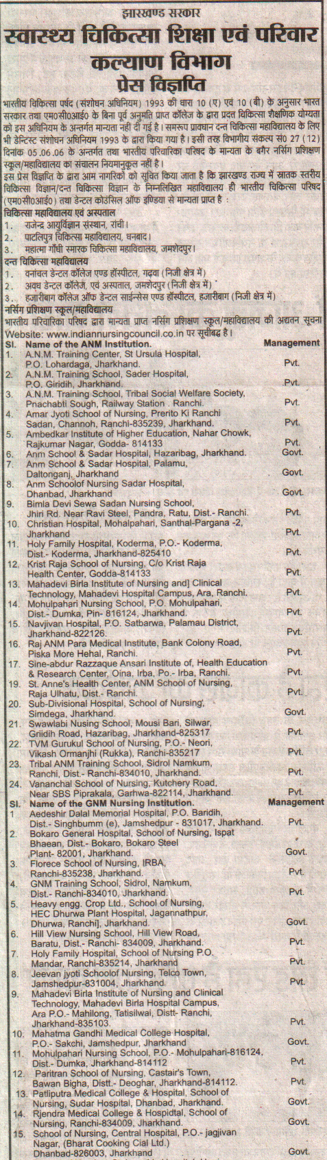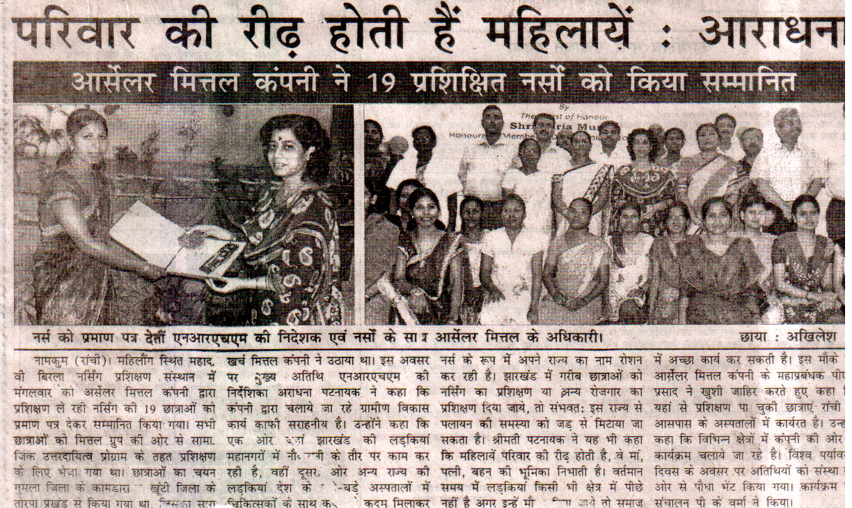 In 2003, this institute commenced an 18-month Auxiliary Nurse Midwife (ANM) Course, officially recognized by the Indian Nursing Council in New Delhi and approved by the Department of Health, Family Welfare, and Medical Education of the Government of Jharkhand. The ANM Course offered by the institute consistently produces well-trained ANM Nurses who are successfully employed in both the private and public sectors throughout the state of Jharkhand."