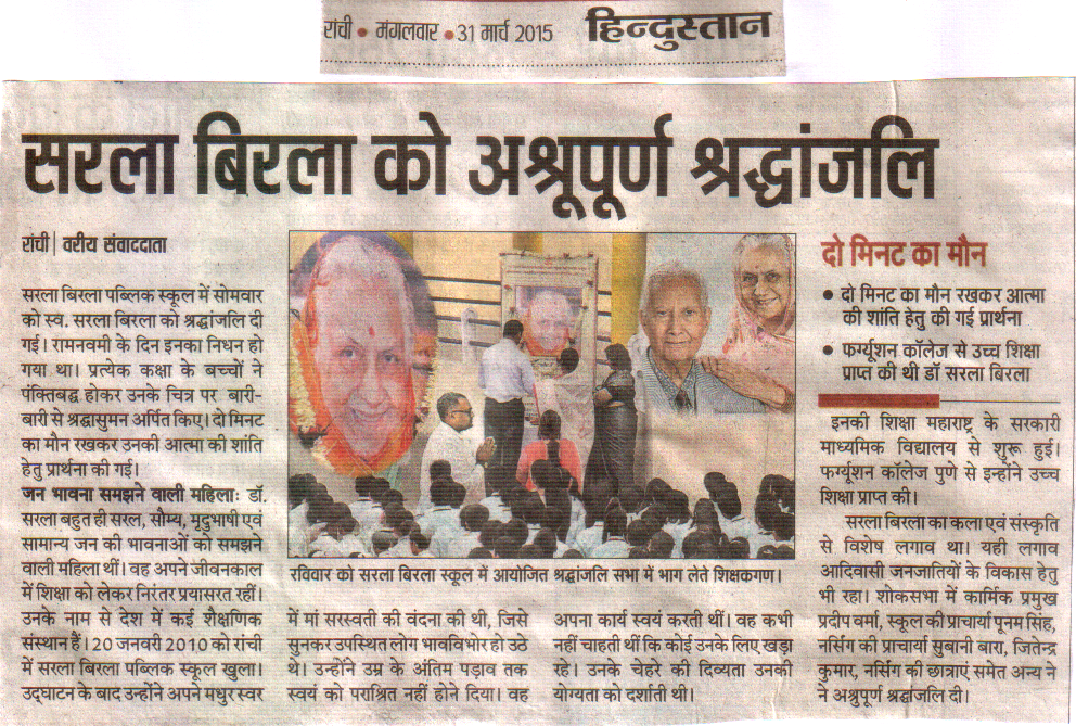 Knowledge for the sake of knowledge, without benefitting fellow beings, is a dead end and only leads to the blind alley of unfulfilled frustration.Education is a meaningless ritual unless it can mould the character of students and give them values of life.The educational institutions have to ensure that each and every student in India is so educated that he is given the required ability both physically and mentally to build up a unique Nation.We are proud of our ancient heritage and we have to ensure that our future is no less glorious.Dr.(Smt.) Sarala Birla